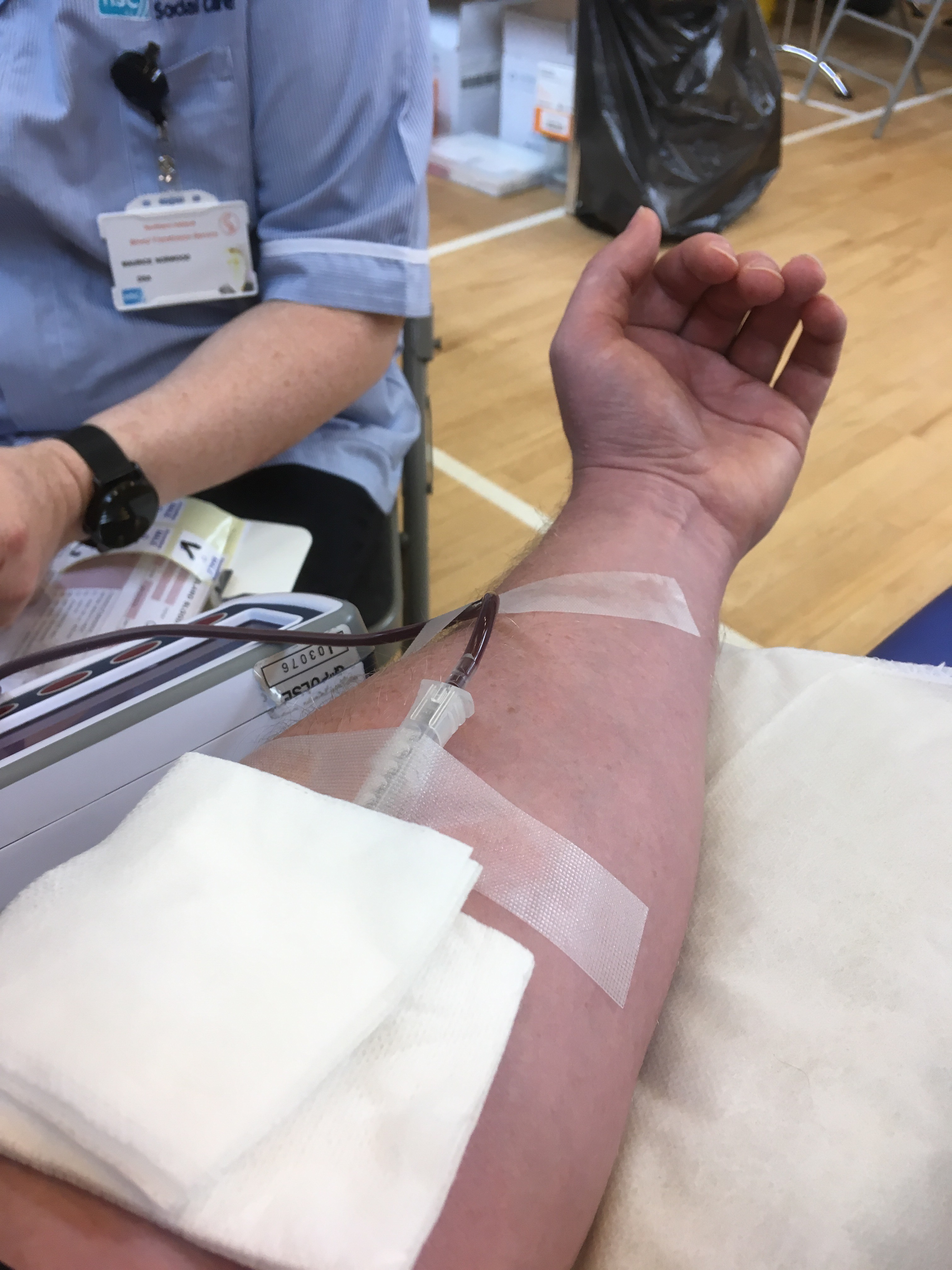 Luckily my blood is flowing readily today and we’re comfortably within that time. He dresses my arm and I sit up. Painless and stress free as ever.