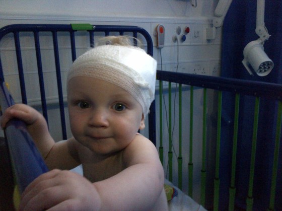 A long night passed like this, with him ripping off the bandage and mummy and me taking it in turns to go and ask the nurses on the graveyard shift if they could redress his head.