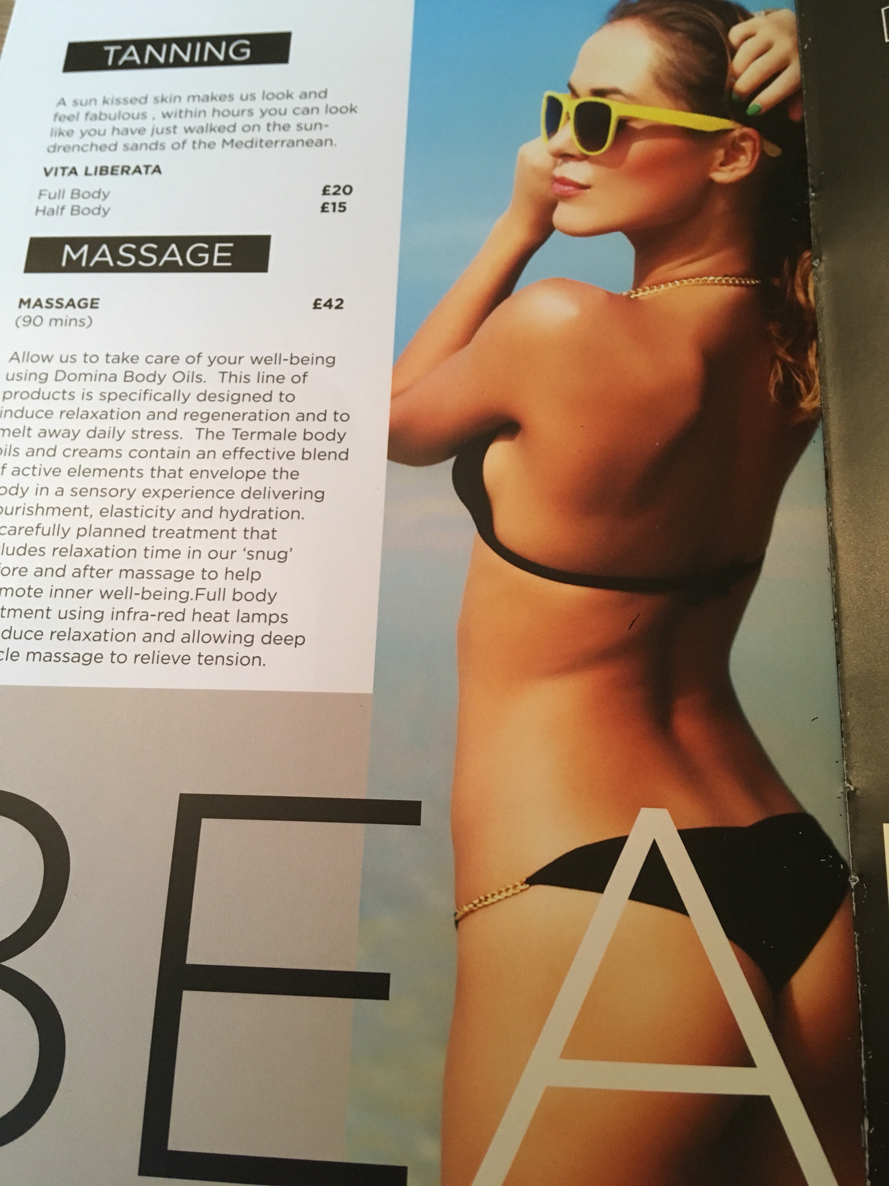 Today in his bag I found a book advertising the services of a local make-up and beauty salon.