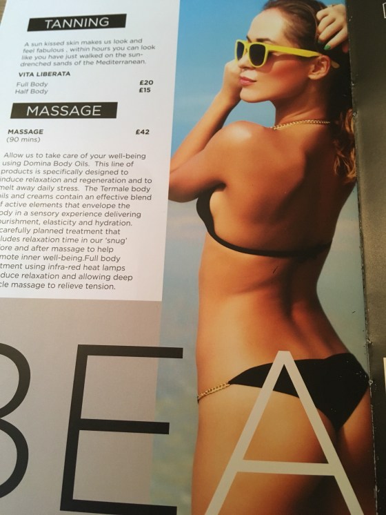 The book offers everything from facials to manicures to Brazilian waxing, full-body tanning to massage.