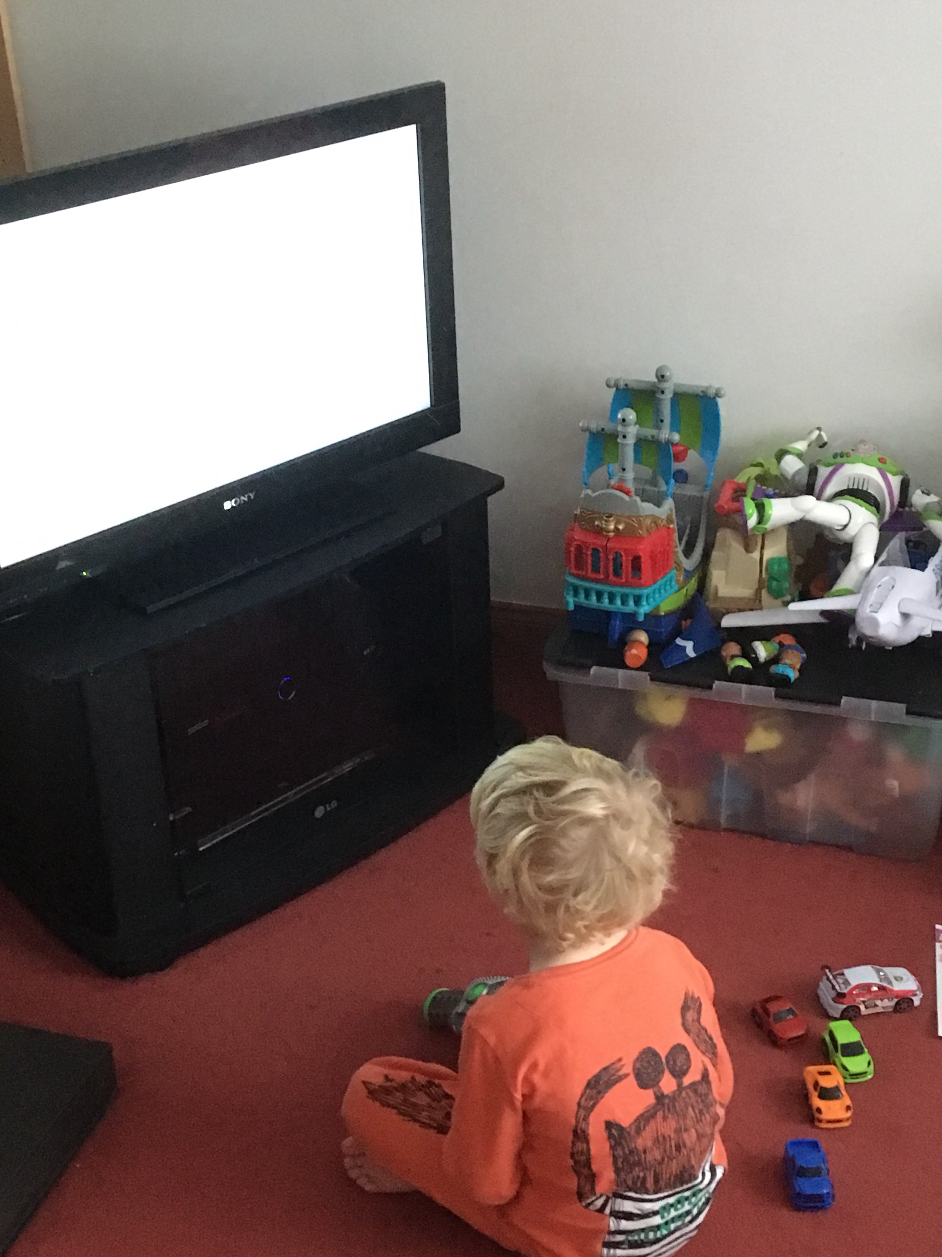 Still no acknowledgement, he’s concentrating on two toy cars, one in each hand.