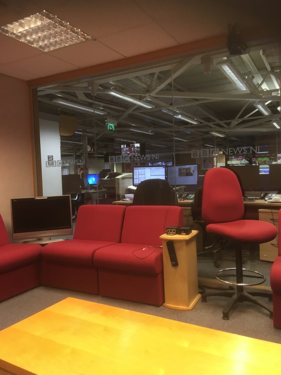 So, later that day I was sitting alone in the green room of the BBC NI building sipping on water from a plastic cup. I was led into the studio and, as ever, resisted the urge to yell expletives while they were doing traffic and travel.