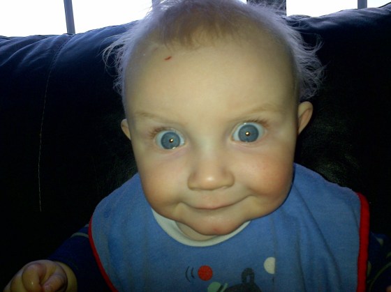 She holds his screaming little globe of a head towards me and I touch his cheek with the back of my hand. I’m not sure what I’m supposed to be reacting to so I take a guess.