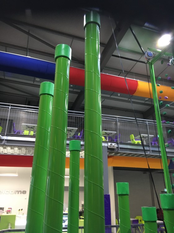 It’s called the ‘Stairway to Heaven’ and consists of a series of thin, circular, green poles which ascend in height. You walk as high as you can bear and then leap off, putting your faith in the rope attached to your harness.